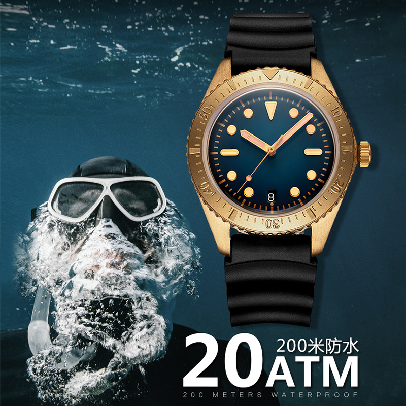 厂家直销200米潜水全自动机械青铜男表 复古防水夜光NH35男士手表