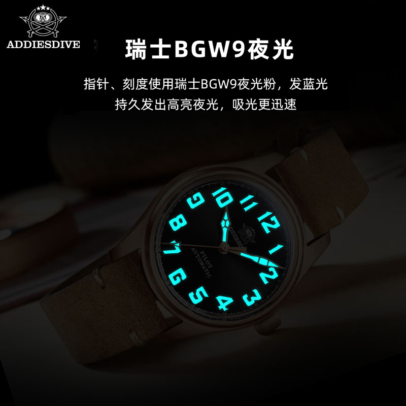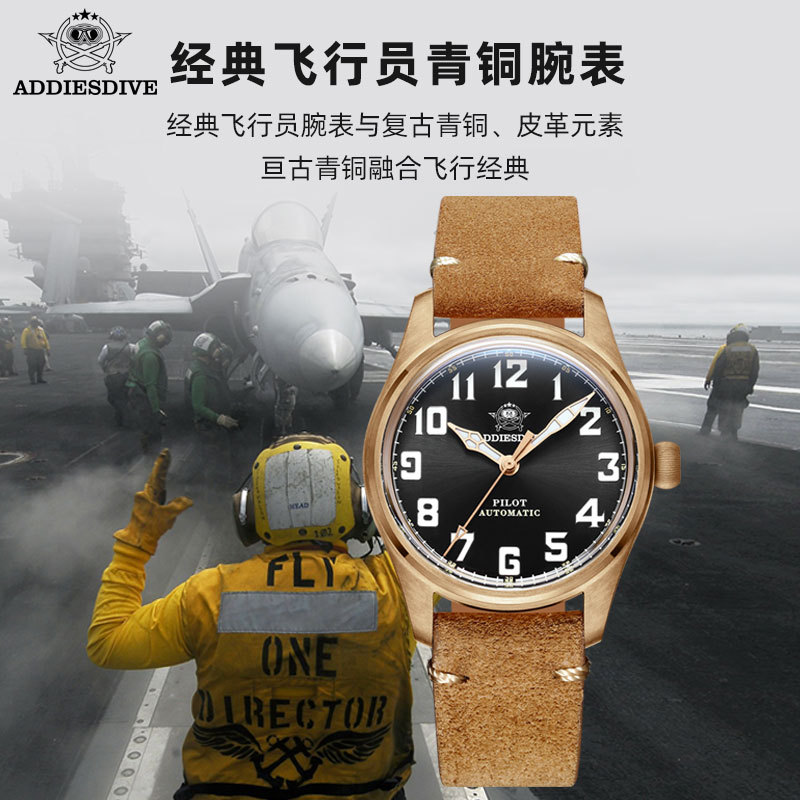 addiesdive复古青铜cusn8机械手表全自动飞行员手表潜水夜光手表