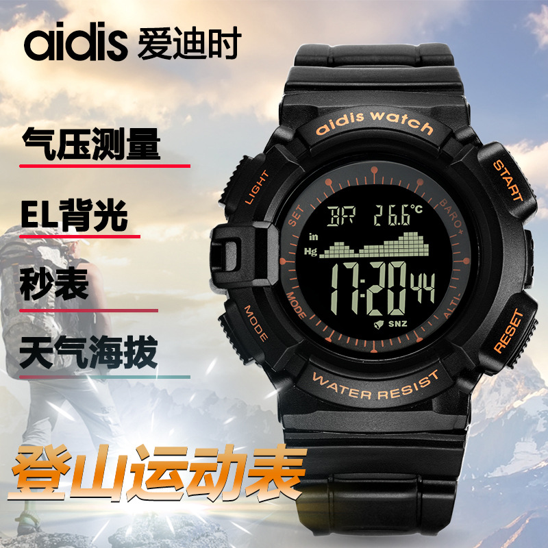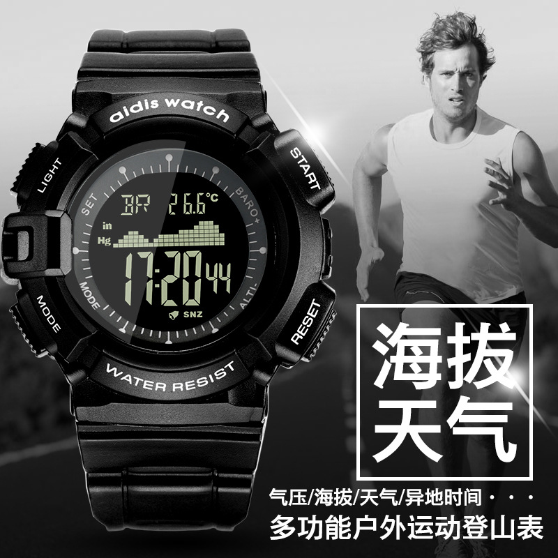 源头厂家批发多功能运动男士手表 户外登山防水钓鱼电子腕表代发