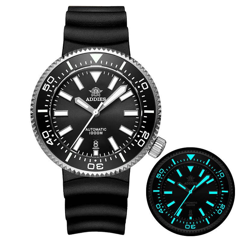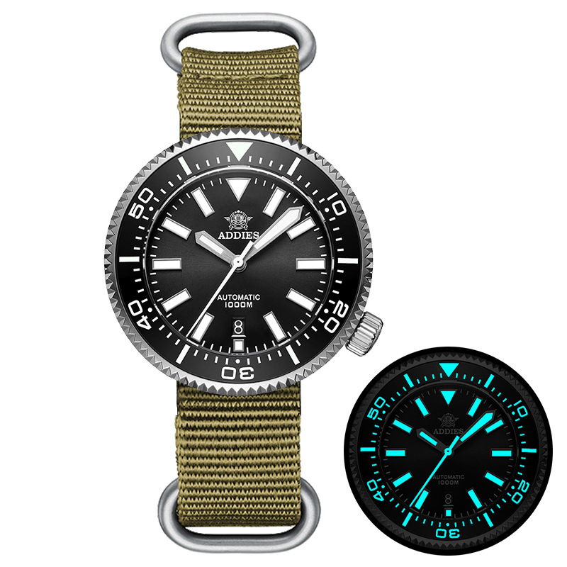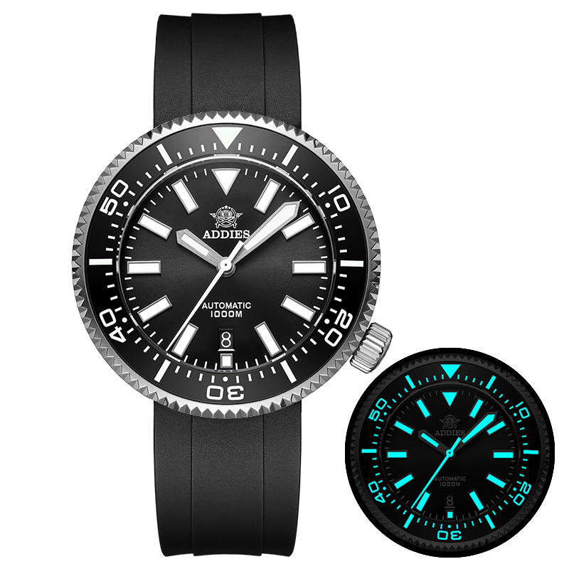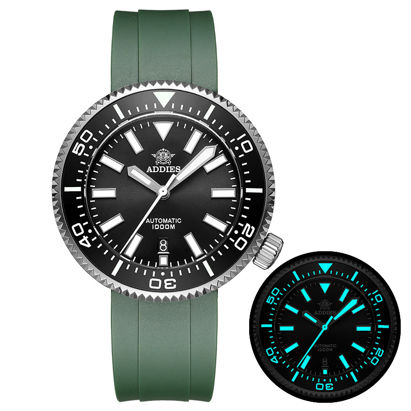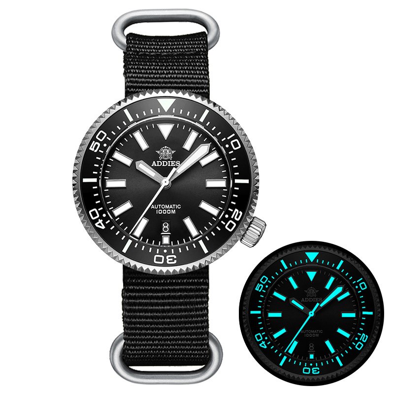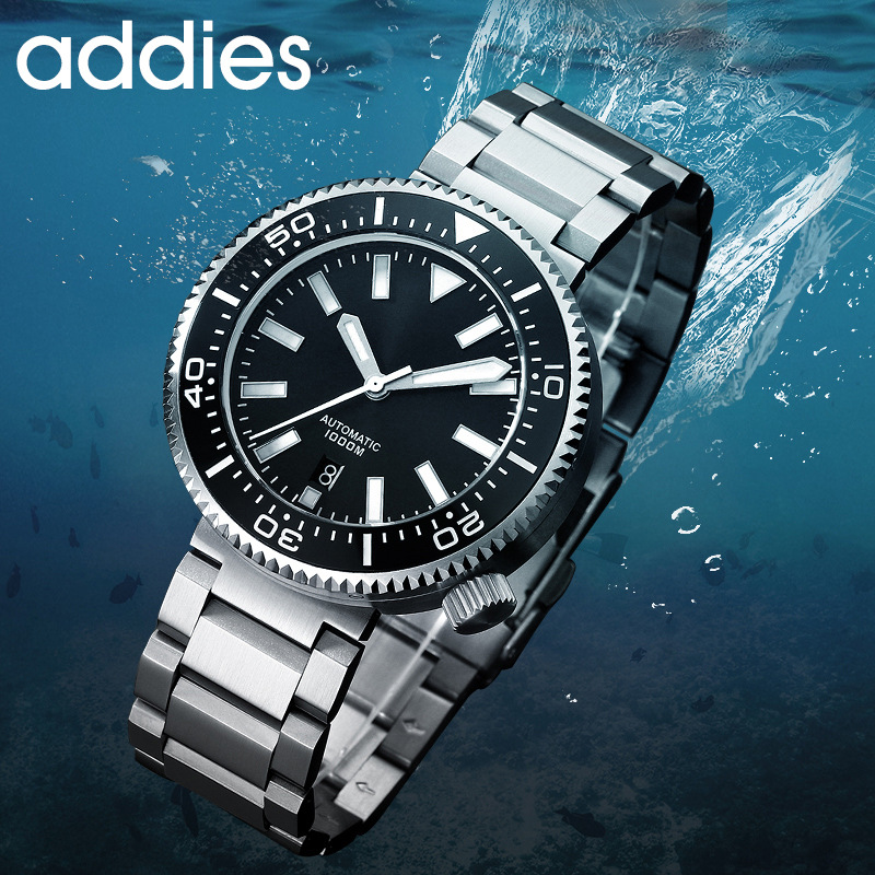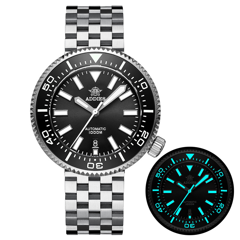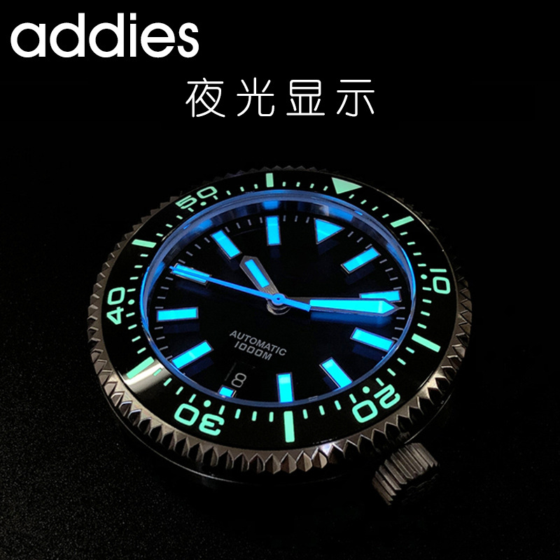 addies厂家直销男士自动机械表 商务C3夜光1000m潜水防水冰球钢表