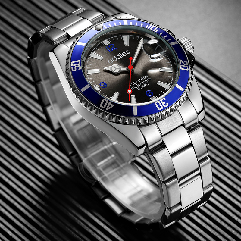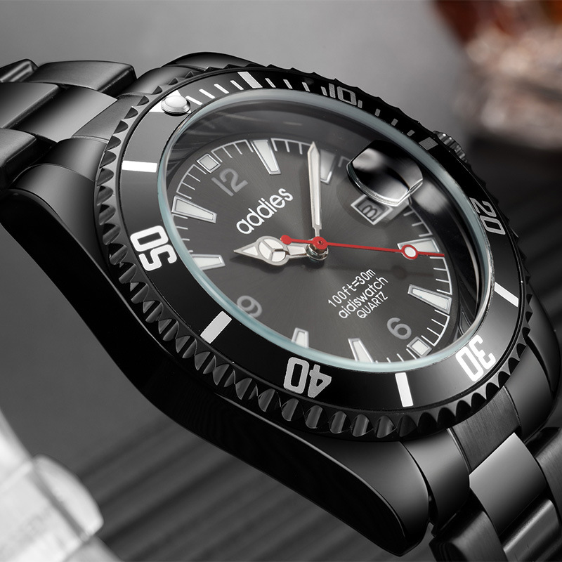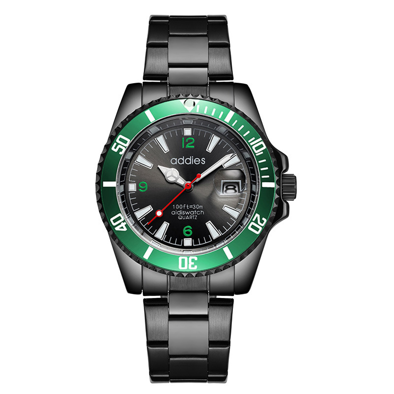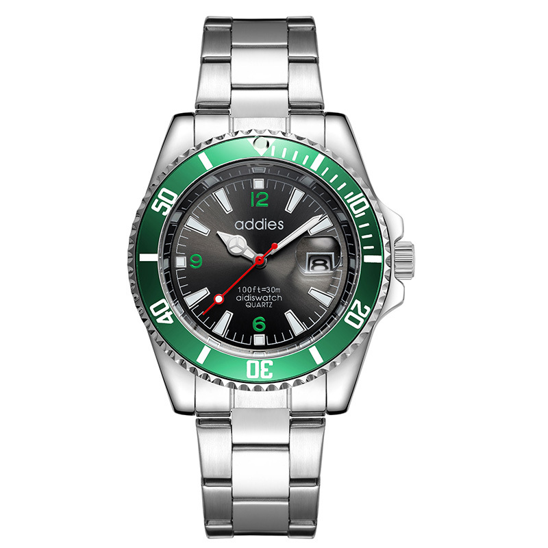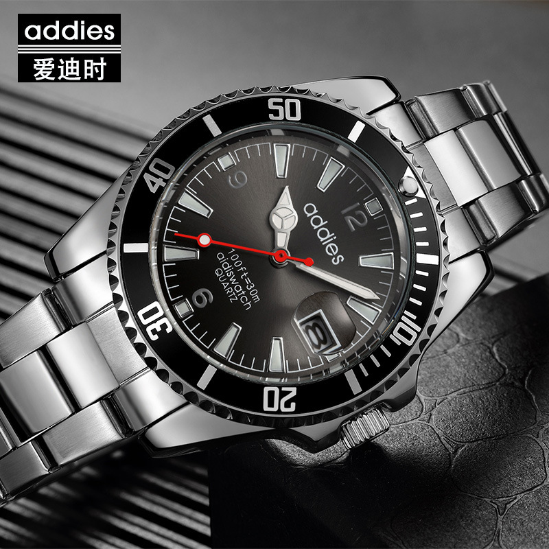 爱迪时正品批发绿水鬼手表高务休闲日历潜水钢带男士石英表厂家