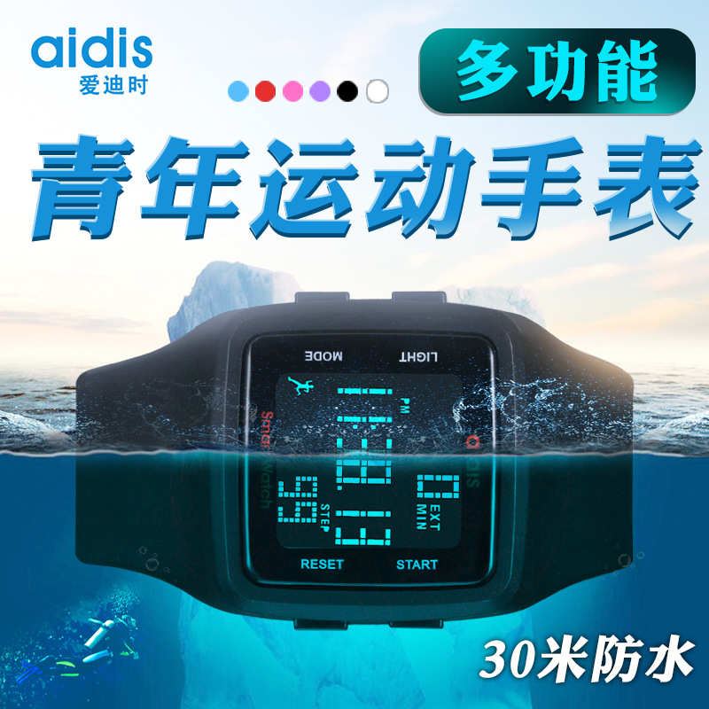 爱迪时批发多功能运动电子表 计步防水儿童学生手表 一件代发