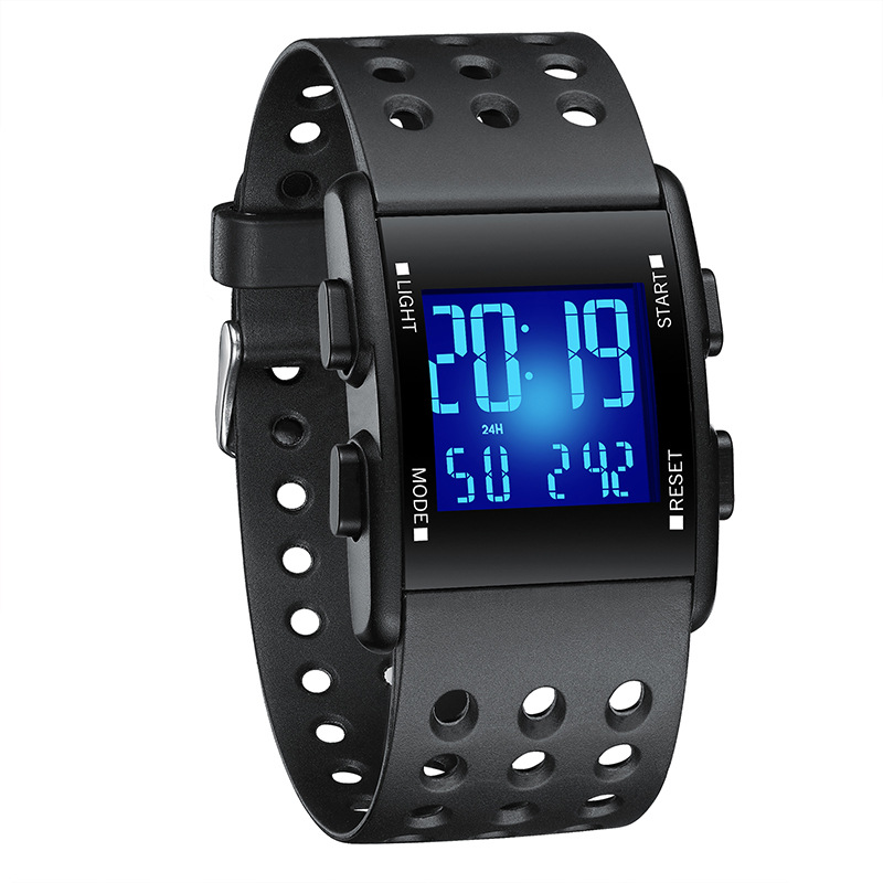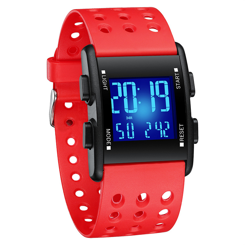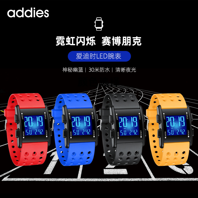 爱迪时手表工厂多功能方形电子表夜光创意运动学生电子款爆款定制