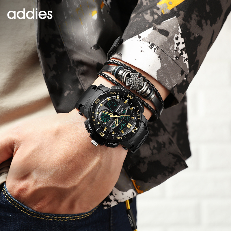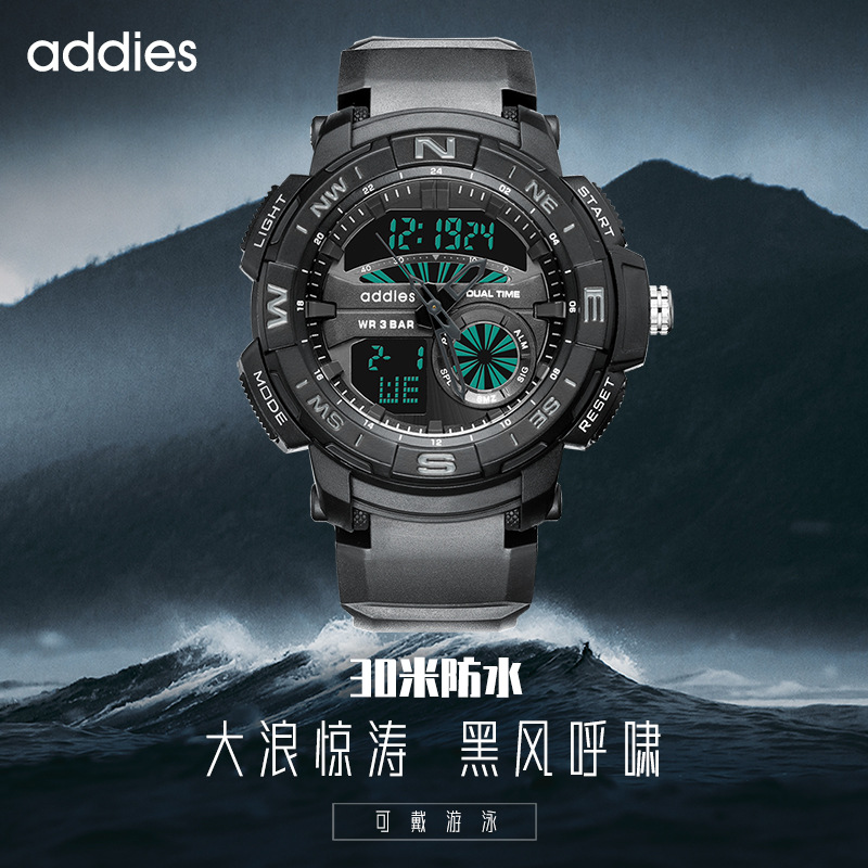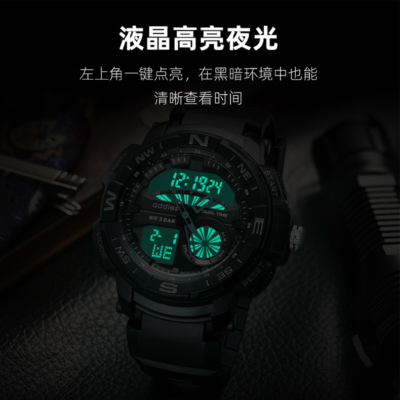 addies2022新军表男士手表户外运动电子表多功能学生防水LED手表