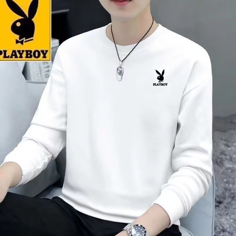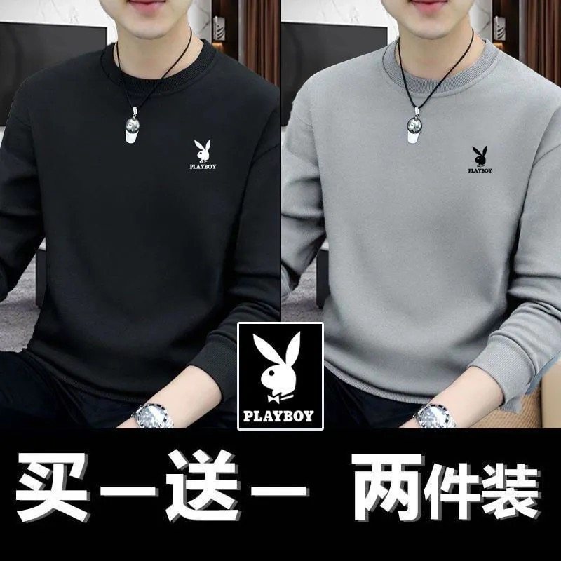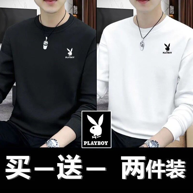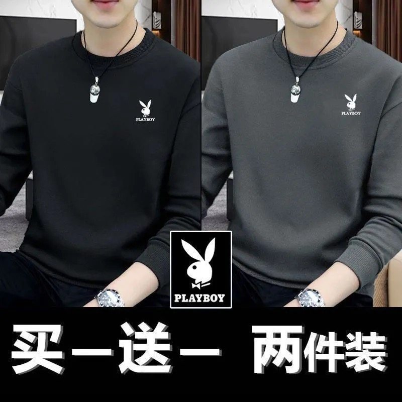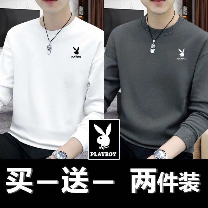 Playboy Clearance Spring and Autumn New Men's Sweatshirt Loose Trend Versatile Crew Neck Casual Long Sleeve T-Shirt Top