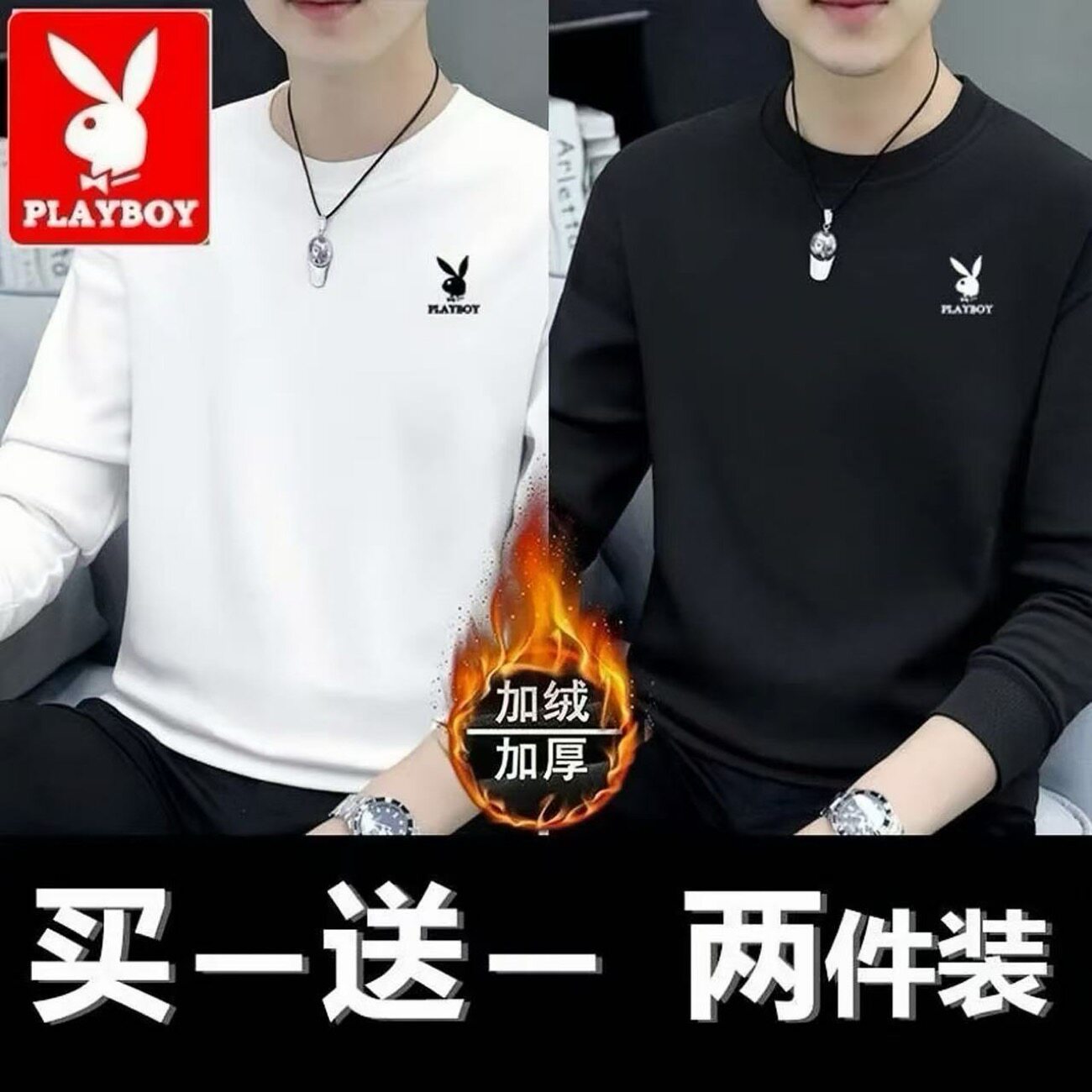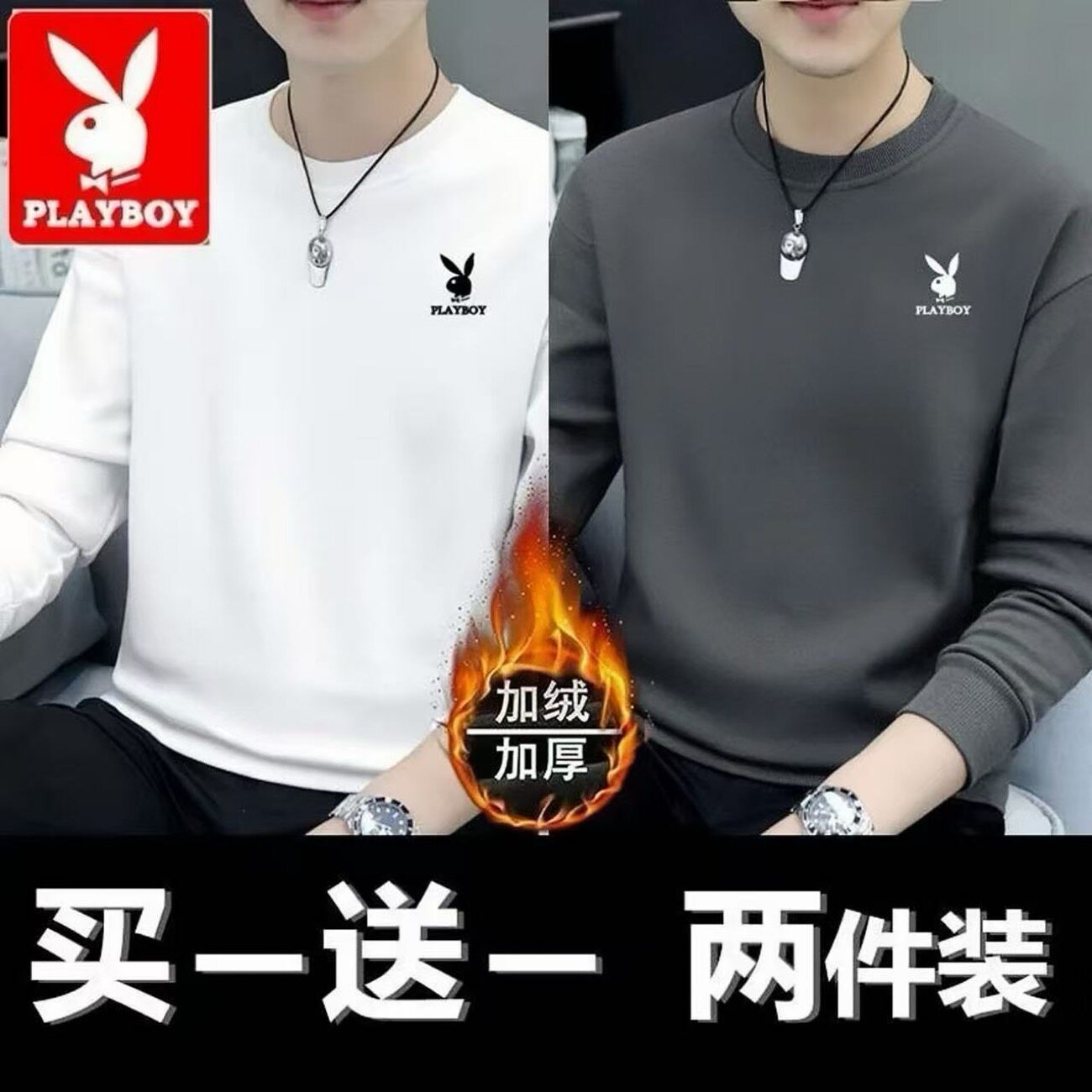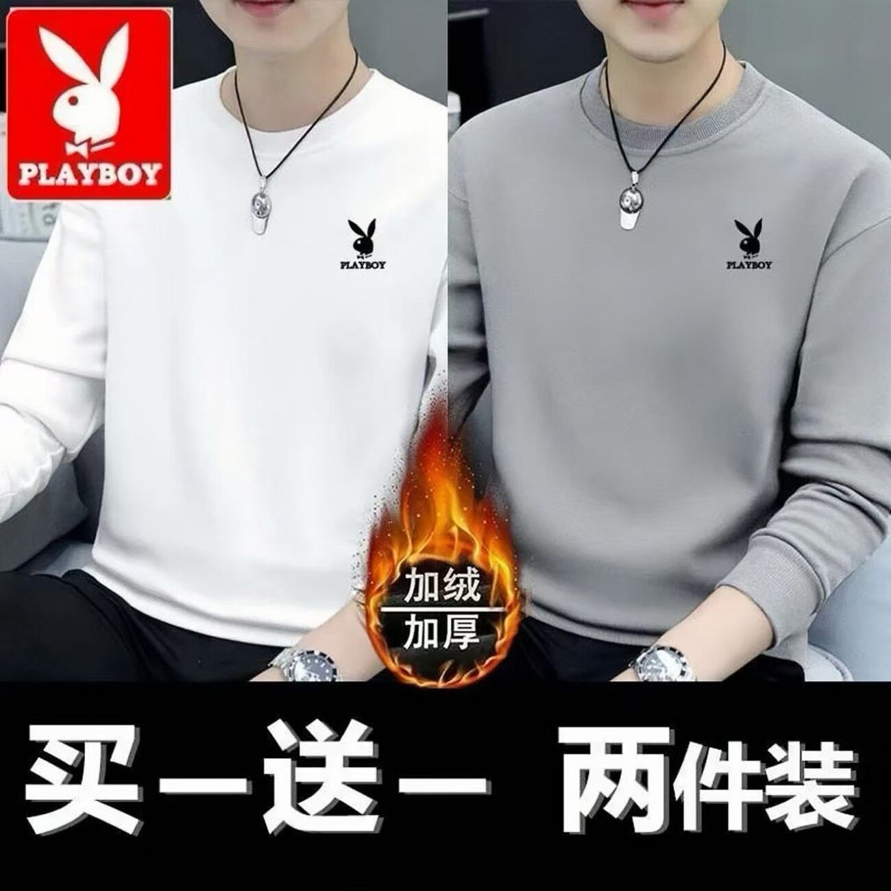 Playboy Clearance Spring and Autumn New Men's Sweatshirt Loose Trend Versatile Crew Neck Casual Long Sleeve T-Shirt Top