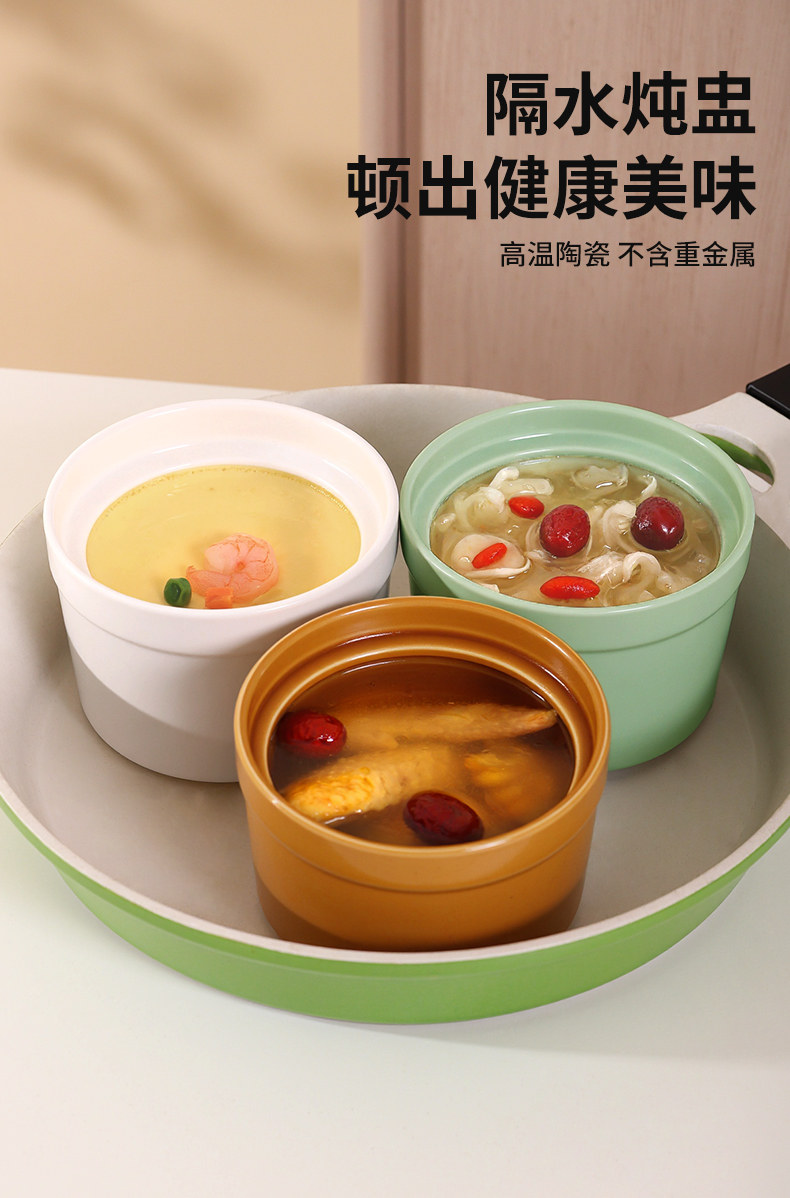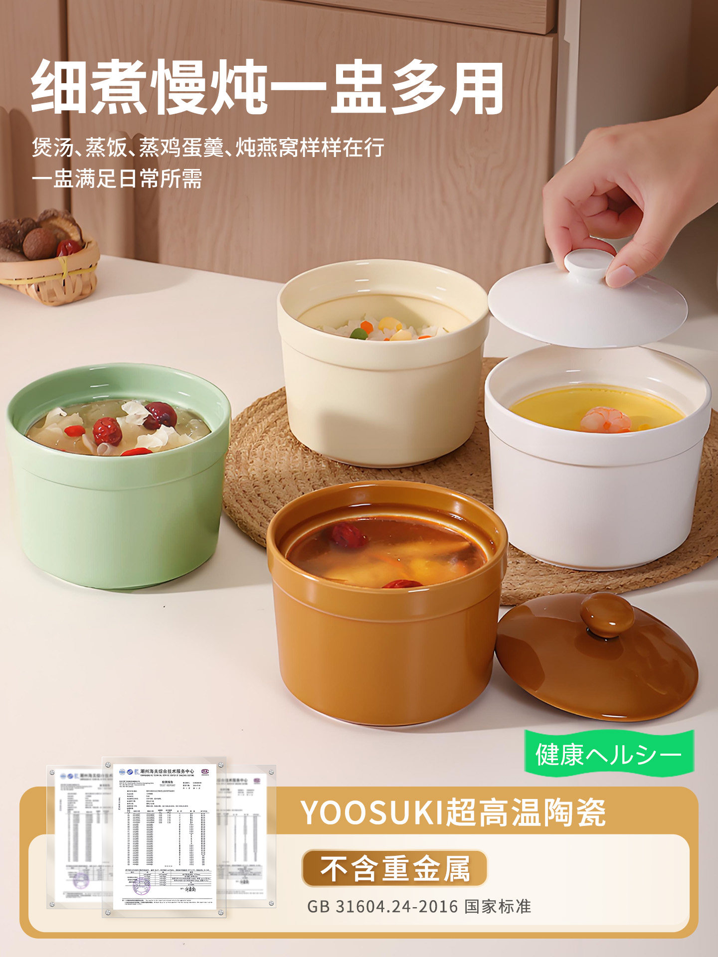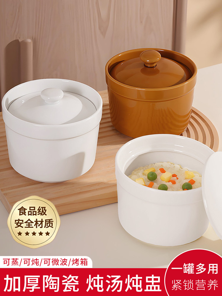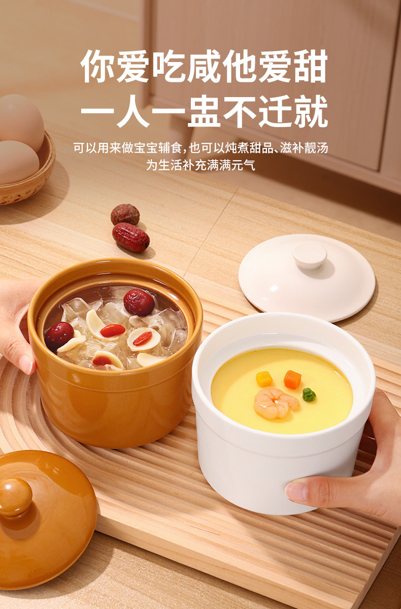 Stew pot stew through water for household steamed vegetables with lid egg custard soup cup stew jar special steamed egg bowl pot soup ceramic small crockpot