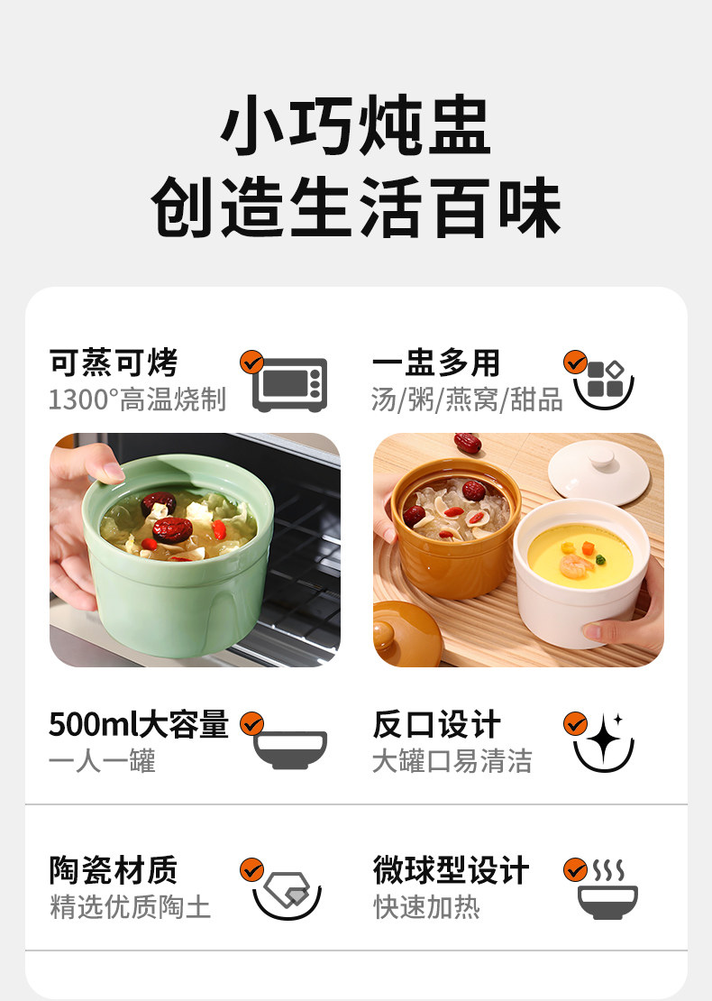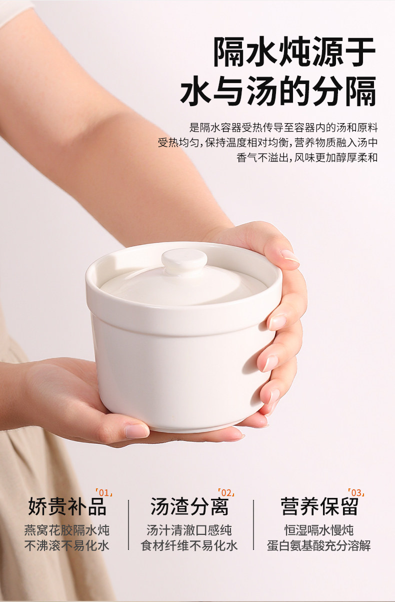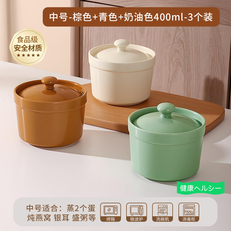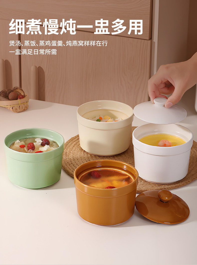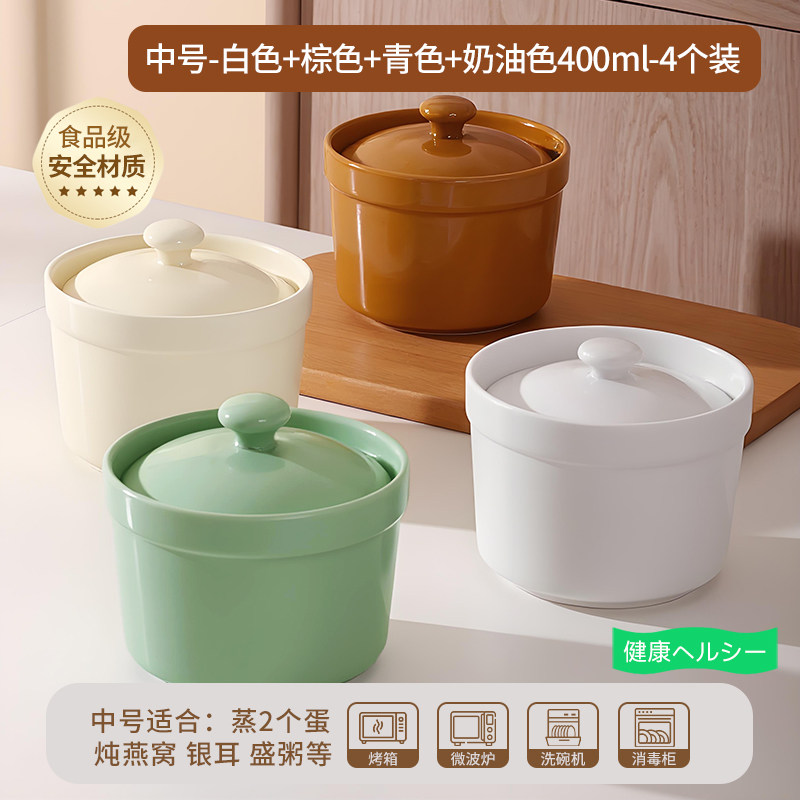 Stew pot stew through water for household steamed vegetables with lid egg custard soup cup stew jar special steamed egg bowl pot soup ceramic small crockpot