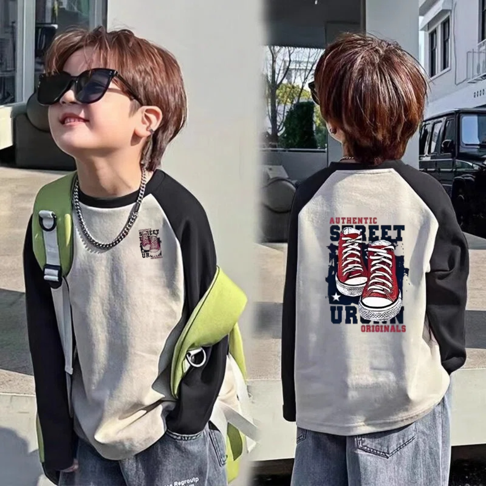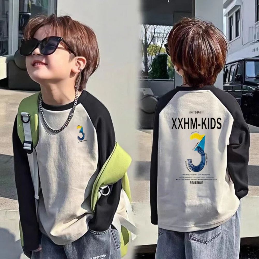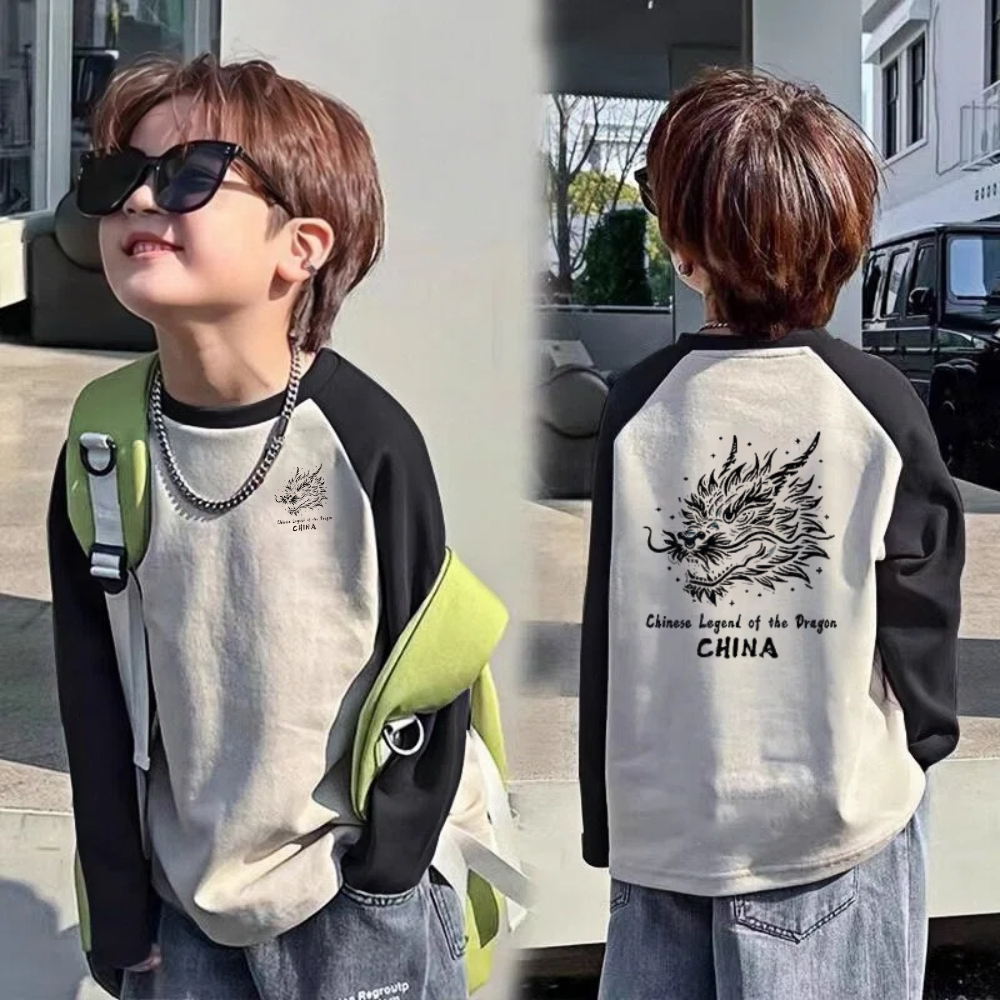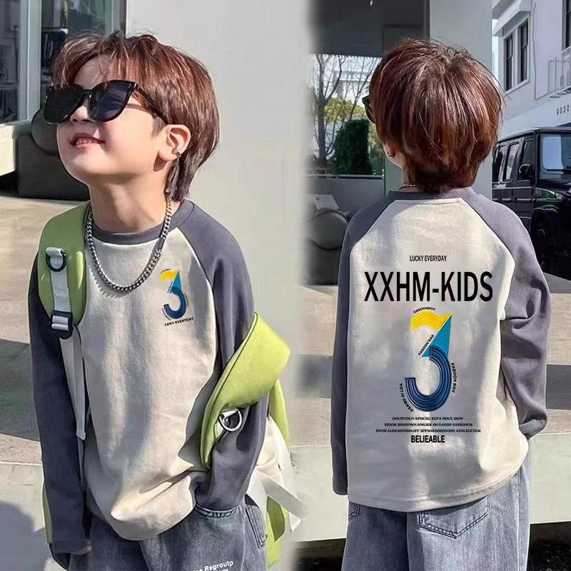 Boys long sleeve t-shirt spring and autumn clothes 2024 new children's base shirts for big boys and boys fried street t-shirt tops