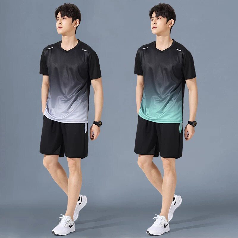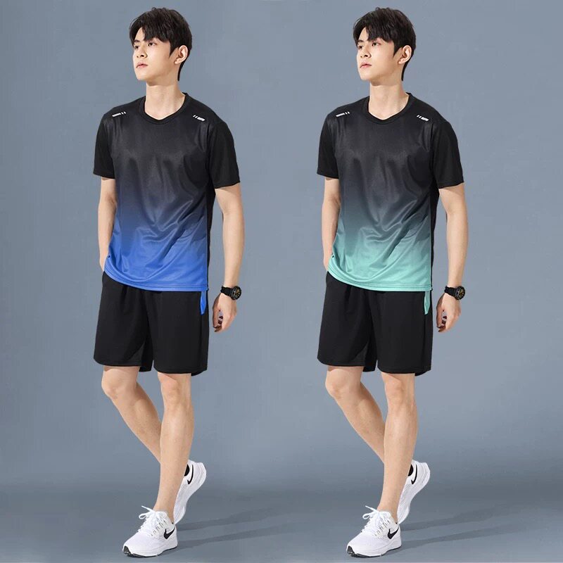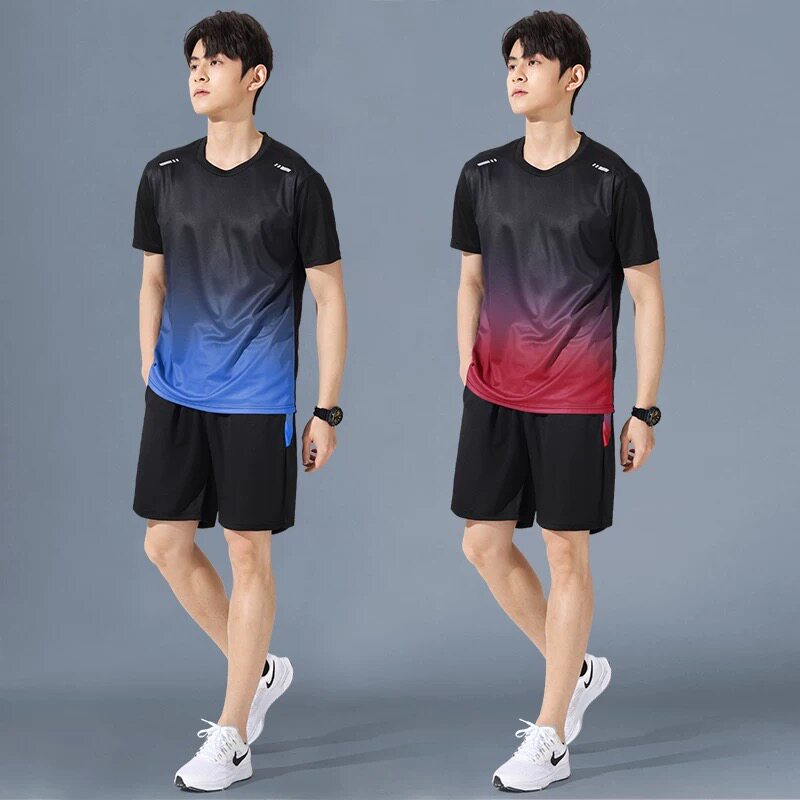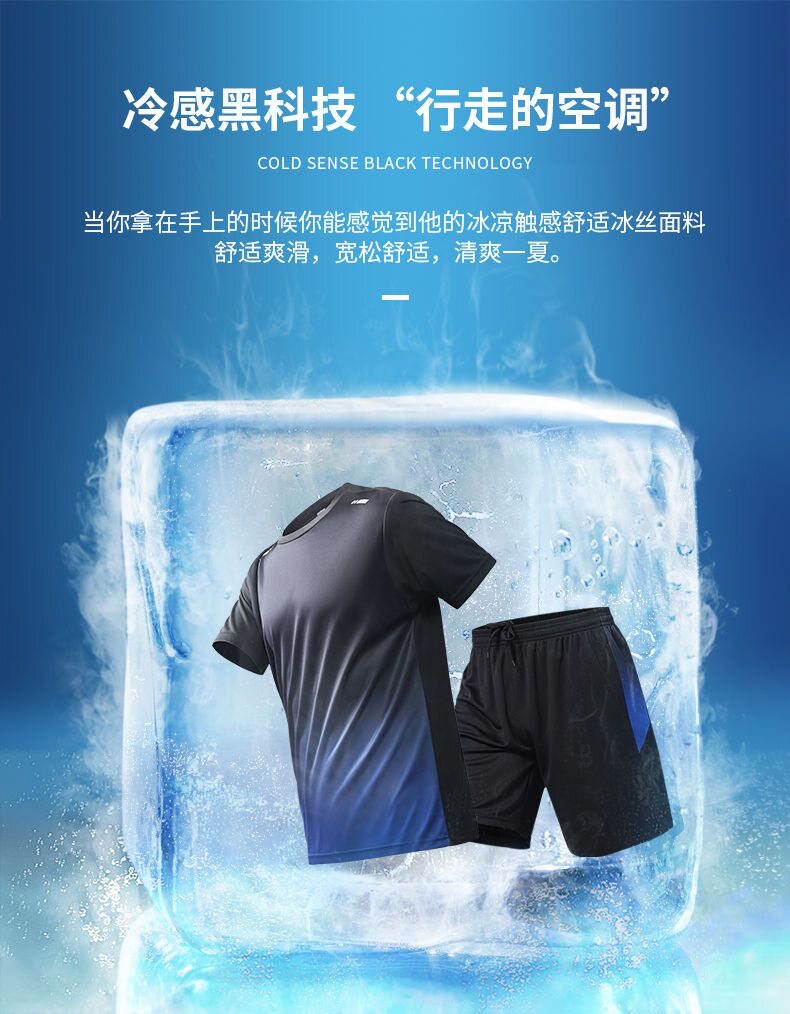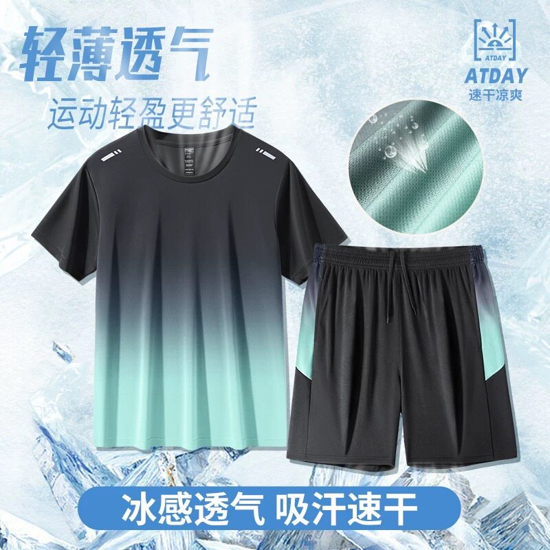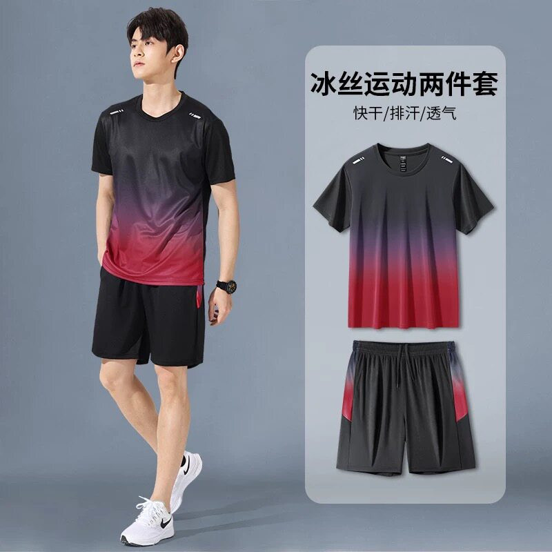 Ice silk T-shirt set for men and women in summer thin sports short-sleeved clothes and short pants with athleisure two-piece set